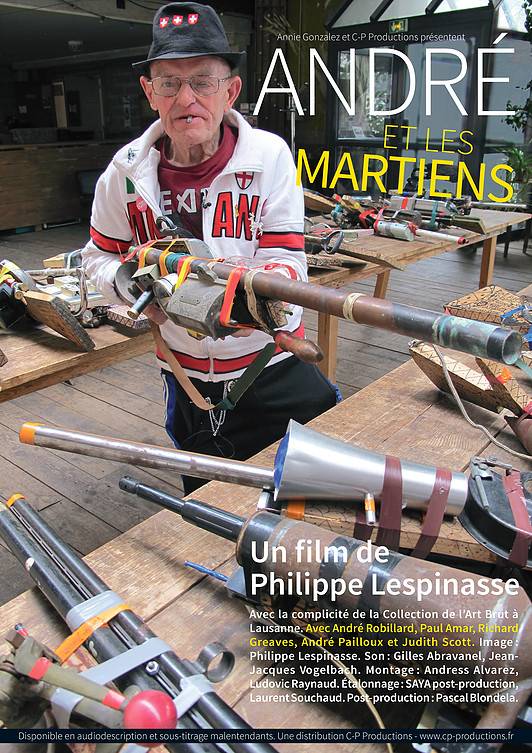 André et les martiens nous embarque pour une promenade bouleversante, dans une proximité rare avec des artistes « bruts » ou outsider, qui travaillent de façon solitaire et construisent des univers qui renversent nos perspectives sur l’art. C’est André Robillard qui nous guide. Sculpteur, dessinateur, musicien, découvert par Jean Dubuffet, il est devenu un des plus importants créateurs de l’Art Brut. Depuis 1964, il fabrique des fusils, des centaines de fusils pour « tuer la misère ».